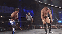 'The Man' by The Killers fills the arena. The Radical emerges wearing his sharp jacket hoody, and matching fresh gear. His plain but classic motif oozes cool as fans boo and cheer the heavy hitter in either direction throughout his long storied career. He flicks the hoody back, revealing the trademark smarmy smirk that made his both famous and infamous all at the same time. The familiar strut glides him toward the ring as he locks eyes with his advisory. The ref points at the opponent t back off. Reno springs in from the apron with his lusting eyes for his true addiction, in-ring competition. The ref gives him a quick pat down for illegal objects, then signals for a match initiation.